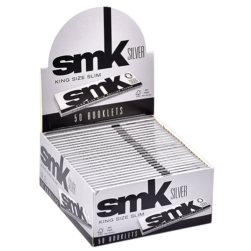 Ультратонкая отбеленная самокруточная бумага SMK King Size Slim Silver.