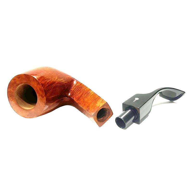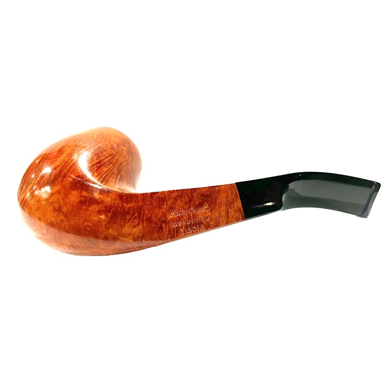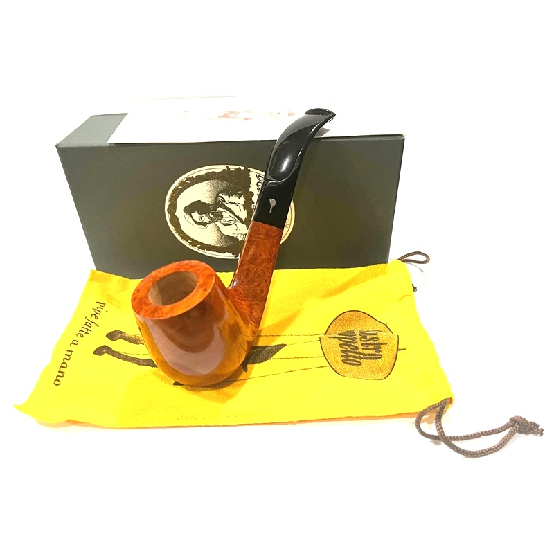 Легкая трубка мастерской Ser Jacopo из серии Mastro Geppetto (Мастер Джузеппе, ит.). Серия посвящена всем итальянским резчикам по дереву в лице, пожалуй, самого известного из них - Мастера Джузеппе, создателя и отца Пиноккио из одноименной сказки Карло Коллоди.Серия оформлена в бело-желтых цветах парика, который носил Джузеппе, а вместо значка J (Jacopo) на мундштуке используется профиль Пиноккио из серебра 925 пробы. Также изображение самой известной итальянской куклы присутствует на серебряных кольцах и кисетах.