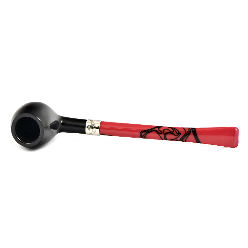 Продолжая ежегодную серию лимитированных выпусков марки, трубка Peterson's Halloween Pipe 2024 черпает вдохновение из любимой линейки Dracula, отличаясь той же угольно-черной отделкой и яркими металлическими акцентами, подчеркнутыми удлиненными, мундштуками из красно-черного акрила, уникальными для выпуска этого года.