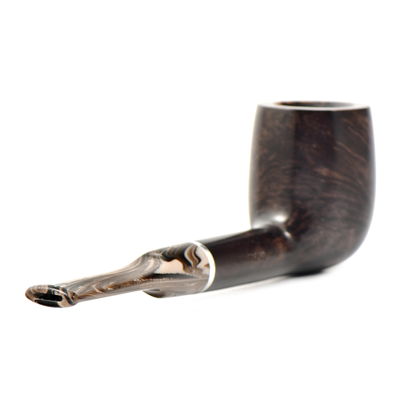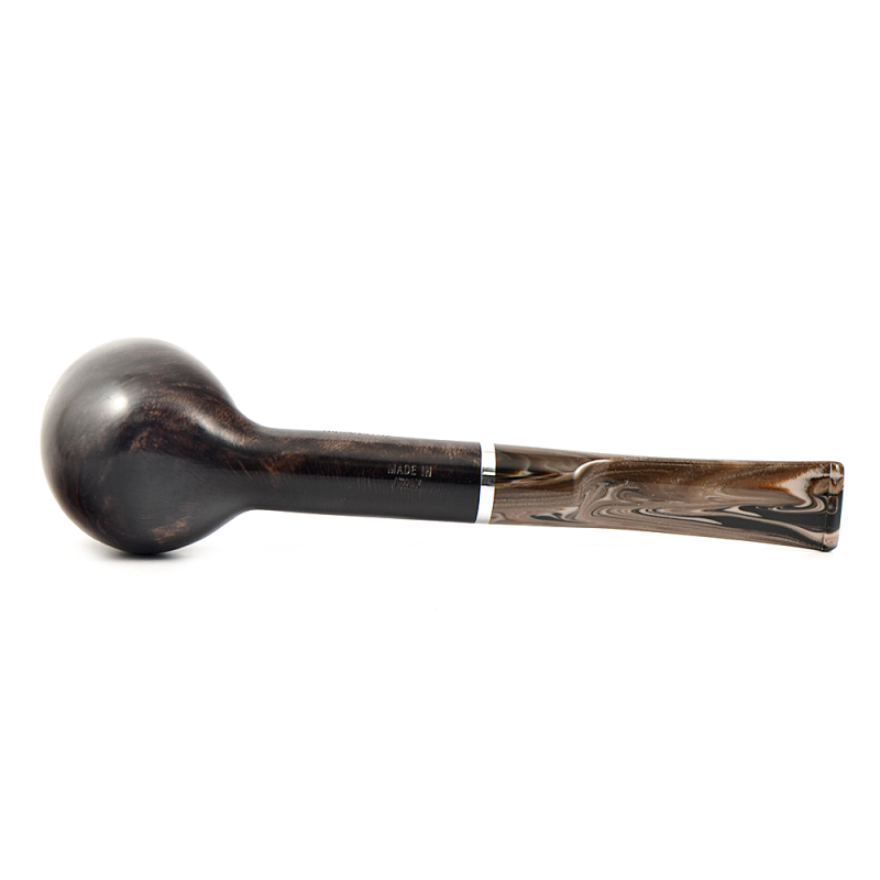 Эта трубка имеет темно-коричневую чашу с гладкой отделкой и черную чашу с рустованной отделкой, а также акриловый мундштук красивого коричневого меланжевого цвета.