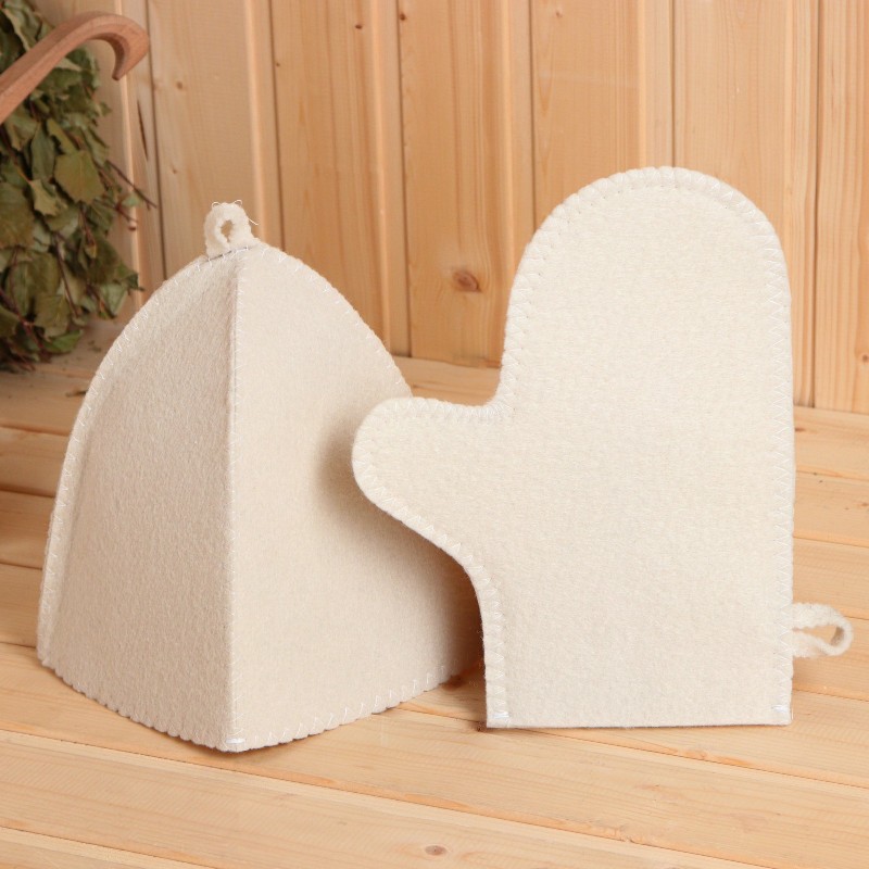 Для комфортного отдыха в парной возьмите с собой набор из пяти предметов. Набор из этого комплекта предохраняют тело от перегрева и являются средствами индивидуального пользования. Влажные изделия рекомендуется сушить в расправленном виде на горизонтальной поверхности. Принадлежности из войлока и фетра стирайте вручную при температуре воды 30 °C.