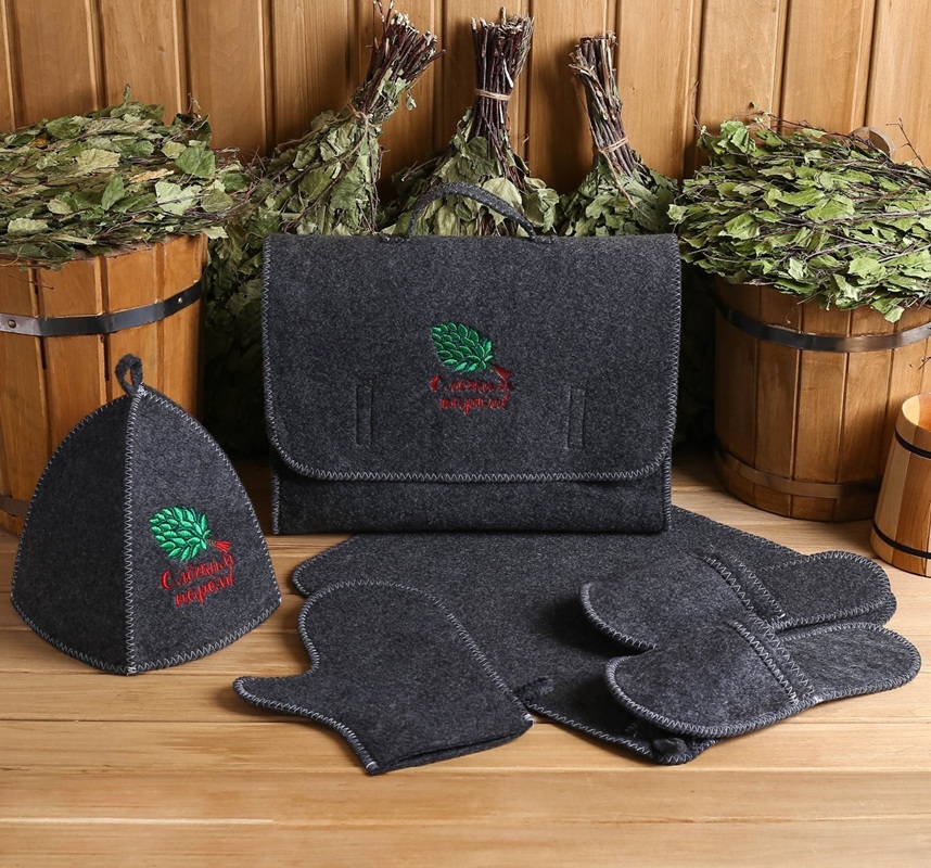 Для комфортного отдыха в парной возьмите с собой набор банных принадлежностей. Предметы из этого комплекта предохраняют тело от перегрева и являются средствами индивидуального пользования. Влажные изделия рекомендуется сушить в расправленном виде на горизонтальной поверхности.