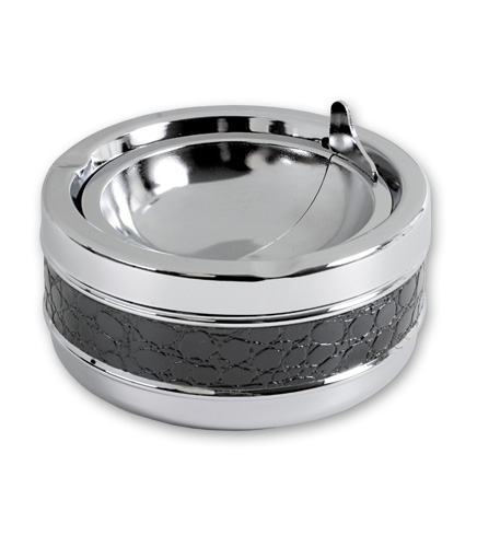 Пепельница S.Quire круглая, сталь, покрытие никель, искусственная кожа, серебристый с черной вставкой, 110 мм