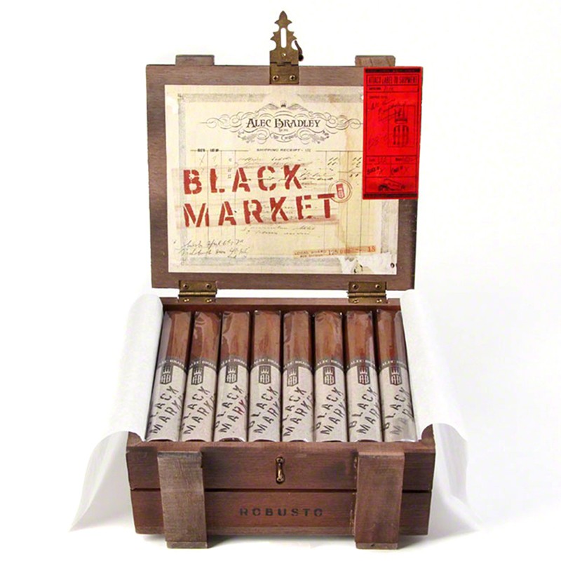 Превосходный релиз Алек Брэдли, Black Market был представлен на выставке IPCPR 2011 (фестиваль для гиков индустрии). Эта смесь из 4 стран заполнена джамастранскими, гондурасскими и панамскими цельными табачными наполнителями, увенчанными живым суматровским переплетом и мощным никарагуанским покровом. При раскуривании смесь выдает неповторимый, сытный вкусоаромат с оттенками специй, перца и торфа. Black Market медленно и ровно горит, оставляет долгое и приятное сухое послевкусие. Крепость немного выше средней, вкус полный. Сигары упакованы в деревянные коробки, стилизованные под ящики для патронов. BLACK MARKET в переводе - «черный рынок». На американском рынке кубинские сигары незаконны из-за торгового эмбарго, их можно приобрести только на черном рынке. Таким названием производитель хотел подчеркнуть схожесть вкусовых ароматов данной линейки с кубинскими сигарами.Алек Брэдли Блэк Маркет получила заслуженный рейтинг 90, с отметкой: «Эта сигара завернута в темную, соблазнительную обертку. Каждая затяжка открывает сладкие тона шоколада, обволакивающие основу из кофейных зерен, ромового пирога и минералов.»Скрутка: РучнаяФормат: RobustoПроизводитель: ГондурасПокровный лист: Maduro НикарагуаСвязующий лист: СуматраНачинка: Панама, Никарагуа, ГондурасРазмер: 132 x 20,6 мм (RG52)Индивидуальная упаковка: ЦеллофанКрепость: Выше СреднейКоличество в коробке: 22 штНаграды и достижения:В 2014 году Alec Bradley Black Market Robusto заняла 20 место в топ-25 по версии Cigar JornalЭта сигара получила 88 баллов по версии журнала Aficianado