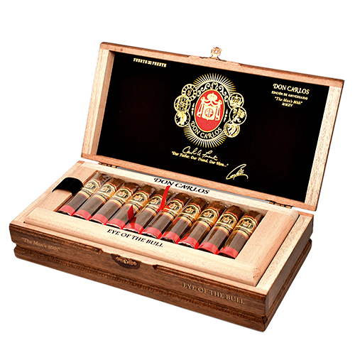 Arturo Fuente - Don Carlos - Eye of the Bull cрученная вручную в Доминиканской Республике, эта насыщенная сигара полной крепости облачена в пикантную красноватую "рубашку" африканского Камеруна, скрывающую связующий лист и начинку из отборного доминиканского табака.Ее фирменная черта - уникальный дизайн: круглая темная вставка из табака, напоминающая мишень или "бычий глаз", благодаря которой сигара получила столь характерное название.Несмотря на свою мощь, курение "Eye of the Bull" поражает удивительной плавностью.Богатый вкусовой профиль раскрывается восхитительными нотами ванили и нежной сливочности, которые элегантно дополняются деликатными, пикантными оттенками.Эта эксклюзивная сигара от "Arturo Fuente" предлагает ценителям концентрированный, изысканный и запоминающийся опыт курения, подчеркнутый безупречным мастерством ручной скрутки.Скрутка: ручная.Формат: Robusto.Производитель: Доминиканская Республика.Покровный лист: Cameroon.Связующий лист: Доминикана.Начинка: Доминикана.Размер: 88.9 x 21.8 мм (RG55).Индивидуальная упаковка: целлофан.Крепость: крепкая.Количество в коробке: 20 шт.Сигара "Arturo Fuente - Don Carlos - The Mans 80th - Eye of the Bull" получила 94 балла по версии журнала "Cigar Aficionado" в 2024 году.