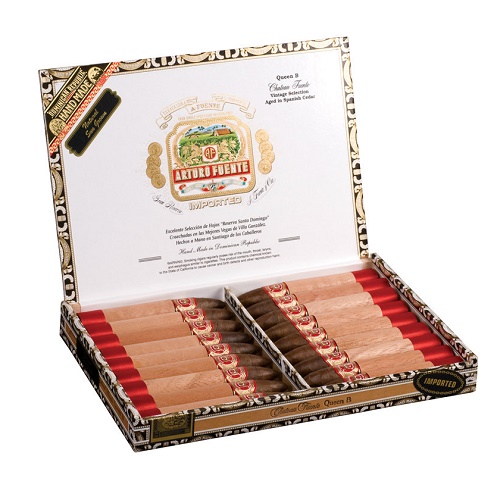 Сигара Arturo Fuente Chateau Fuente Queen B. Тончайший покров создан из самых дорогих табаков Эквадора. Наполнитель и связующий лист – высококачественные винтажные табаки Доминиканы, прошедшие длительную ферментацию.