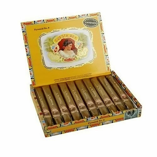 В XIX веке эта марка являлась «официальной» сигарой короля Испании Альфонса XI.За воссоздание серии сигар «Cuesta Rey Centenario» (Столетие Куэста Рей) взялись два величайших сигарных мастера наших дней - Стэнфорд Ньюман и Карлос Фуенте. Эти сигары производятся на легендарной доминиканской фабрике "Tabacalera A. Fuente". Процесс изготовления полностью идентичен тому, как Сеньор Куэста делал это в 1884 году. Исключительными по качеству эти сигары делает гармоничное сочетание специально отобранных табачных листов, особый способ 4-х летней выдержки табачных листов наполнителя, а также 100% ручная скрутка на всех этапах производства. В основном используются местные, Доминиканские сорта табака, только для покрова берется лист Maduro, выращиваемый на плантациях США.Предназначенная для опытных курильщиков сигара обладает собственным характером и великолепным балансом вкуса и аромата. Глубокие кофейно-шоколадные тона на всем протяжении сопровождают лёгкая сладость и пряные цветочные и сенные ароматы.Скрутка: РучнаяФормат: PiramideПроизводитель: Доминиканская РеспубликаПокровный лист: ConnecticutСвязующий лист: ДоминиканаНачинка: ДоминиканаРазмер: 159 x 20.6 мм (RG52)Индивидуальная упаковка: ЦеллофанКрепость: СредняяКоличество в коробке: 10 шт