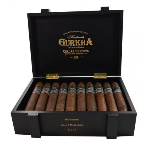 Gurkha Cellar Reserve Hedonism Grand Rothchild - ограниченный выпуск знаменитой линейки от Gurkha.При создании, были использованы: самый лучший табак 15-летней выдержки, покровный лист из восхитительного Бразильского табака Arapiraca цвета Maduro (Мадуро), в сочетании с начинкой из Доминиканы и связующего листа Olor, она имеет полный, неповторимый вкус с многообразием оттенков.Скрутка: РучнаяФормат: Grand Rotshild (Perfecto)Производитель: Доминиканская РеспубликаПокровный лист: Maduro (Бразилия)Связующий лист: ДоминиканаНачинка: ДоминиканаРазмер: 152 x 23 мм (RG58)Индивидуальная упаковка: ЦелофанКрепость: Выше СреднейКоличество в упаковке: 20 шт