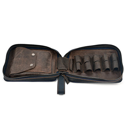 Сумка Travel (Синяя Сталь) Кожаная - для 5 трубок