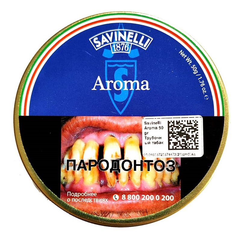 Трубочный табак Savinelli Aroma это мягчайший Black Cavendish, тёмная Virginia, Broadleaf и Oriental использованы в этой полной аромата душистого миндаля и Бурбон-ванили микстуре, слегка сладкой на вкус.
