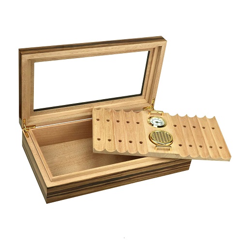 Внутренние детали сделаны из высококачественного испанского кедра.Стеклянная крышка позволяет видеть сигары, находящиеся внутри хьюмидора, добавляя эффектности внешнему виду изделия.