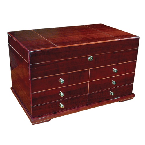 При знакомстве с этим хьюмидором сразу стоит отметить его солидный внешний вид и безупречную внешнюю отделку.