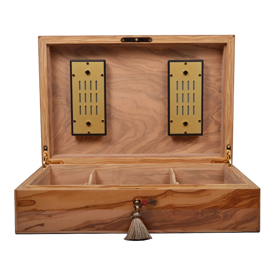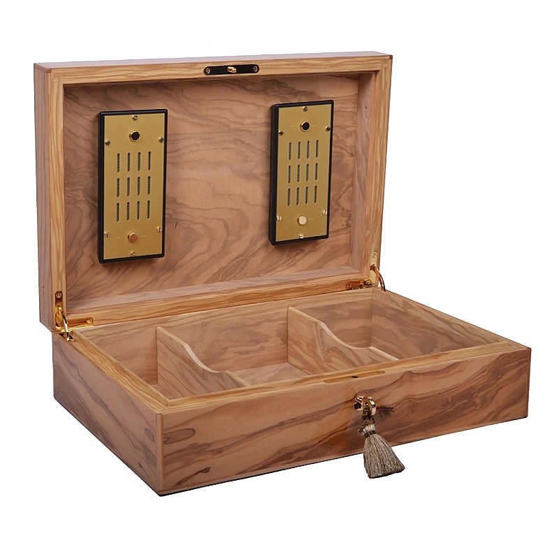 Изящный хьюмидор Olivier Wood на 110 сигар выполнен из оливкового дерева.