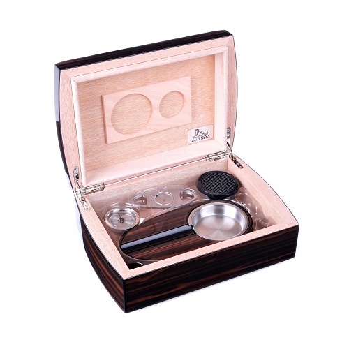 Хьюмидор на 25 сигар итальянской компании Lubinski в наборе с пепельницей и гильотиной. Внутренняя отделка выполнена из испанского кедра.