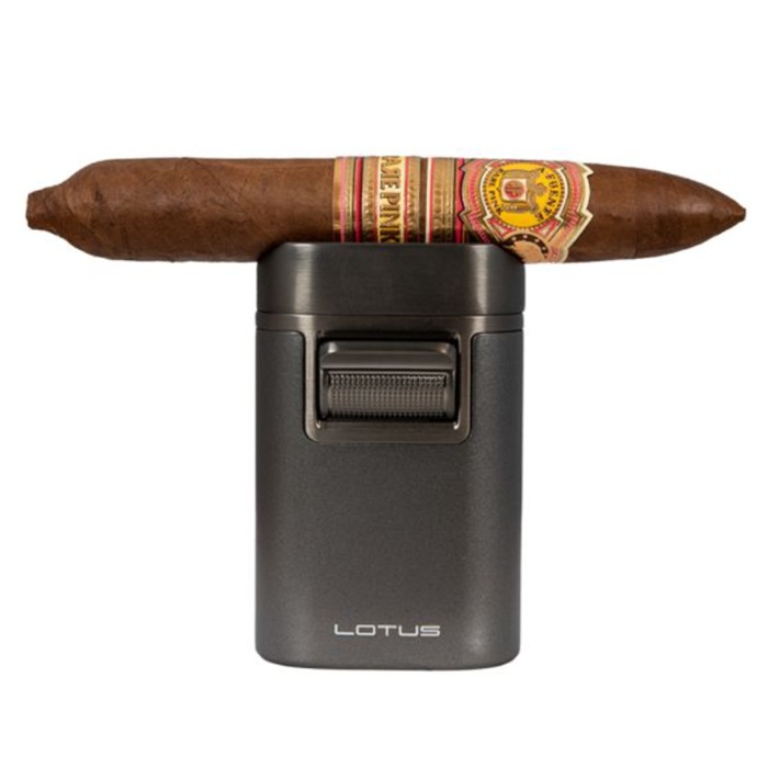 Мощь, стиль и надежность в классическом оттенке Gunmetal. Настольная зажигалка Lotus Brawn Gunmetal T7G - это премиум-аксессуар для настоящих ценителей сигар. Элегантный металлический корпус цвета gunmetal придает устройству строгий и современный вид, а массивная конструкция подчеркивает статус владельца. Четыре мощных турбо-горелки обеспечивают быстрое и равномерное поджигание сигары. Верхняя часть зажигалки служит подставкой для сигары, что делает процесс курения еще более комфортным.