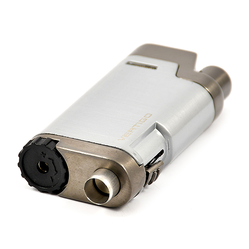 Ветроустойчивая сигарная турбо-зажигалка Vertigo Bullet Chrome & Gunmetal.Прочная зажигалка с двойным турбопламенем, в изящном корпусе, также встроен пробойник для сигар.Крышка защищает форсунки от грязи.Заправляемая, с регулировкой пламени.Страна производства: Китай.