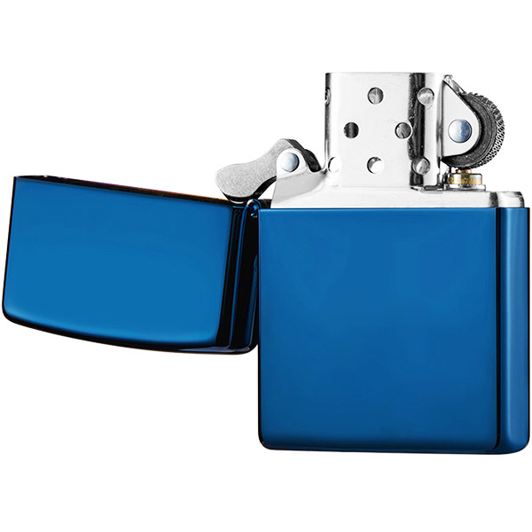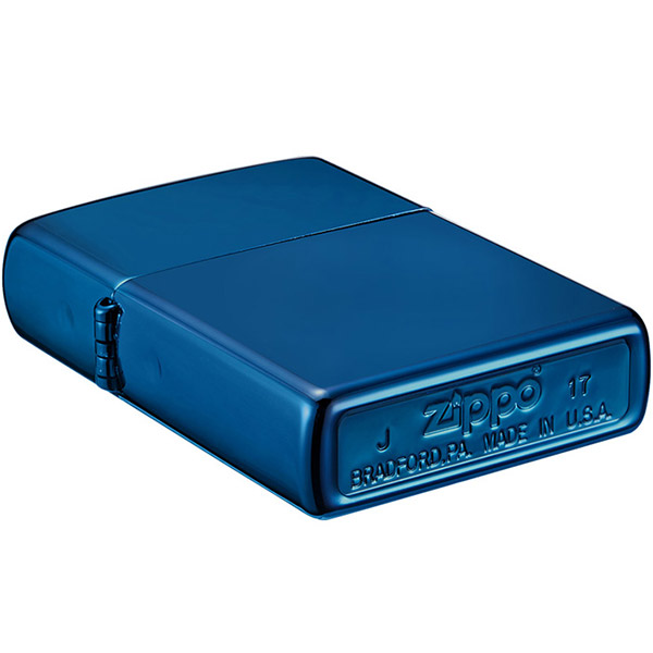 Корпус из латуни Zippo High Polish Indigo с блестящим фиолетово-синим хромовым покрытием, также известный как зажигалка Indigo, зажигалка Sunset .